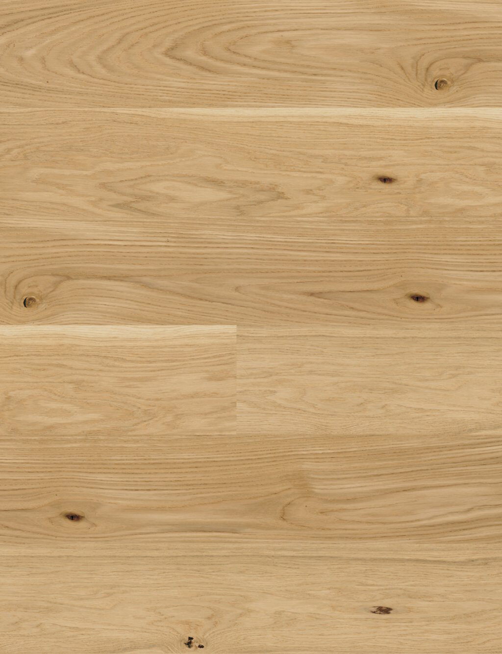 Ein Eichenfußboden in edler Rohholzoptik mit wunderschön hervorgehobener Struktur dank gebürsteter Oberfläche. Die Landhausdiele Épure zählt zu den schönsten und stilvollsten Holzböden, die in nahezu jedem Raum mit ihrer natürlichen und eleganten Schönheit überzeugt. Fertigparkett im Stile der Landhausdiele vermittelt ein großzügiges Raumgefühl und wirkt wie ein Boden aus einem massiven Holz, das Wärme und Geborgenheit verspricht.