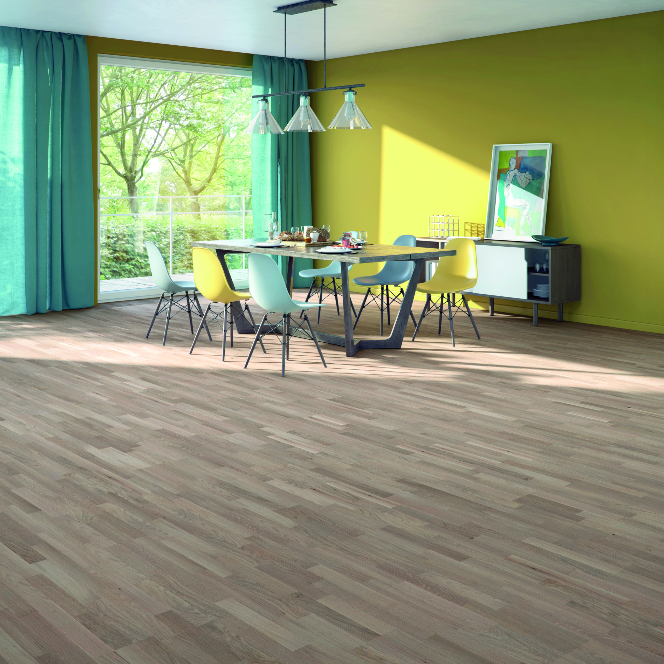 Schiffsboden Eiche Stone ist unser Basisprodukt mit eleganten Eichendekor, das Ihnen Wohlfühlambiente zum besten Preis bietet!